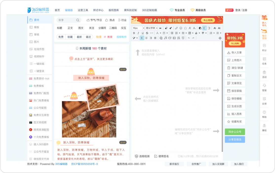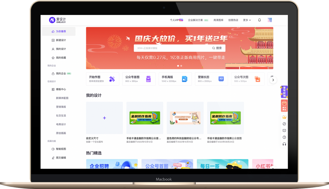 上千万的模板与设计素材、优质的图文设计与排版功能