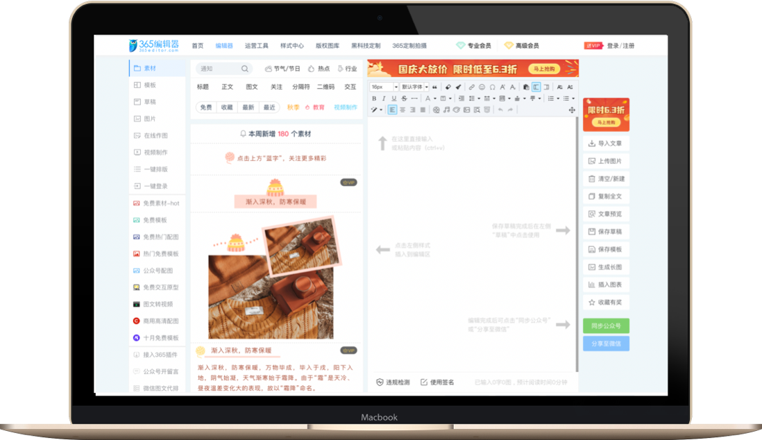 在线全文编辑、实时预览,文章模板一键套用